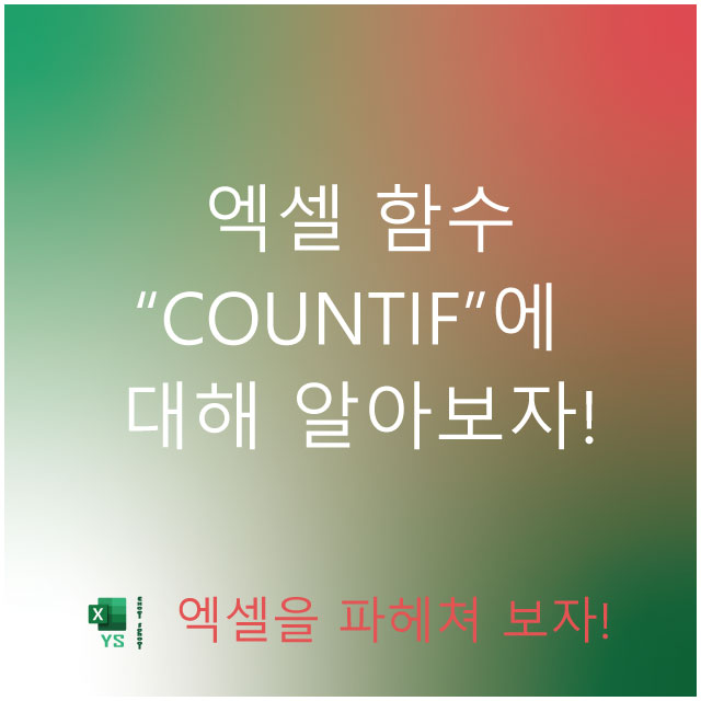오늘은 엑셀 함수 중 "COUNTIF" 이라는 함수를 알아보도록 하겠습니다.