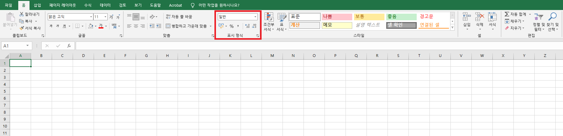 표시형식 설정은 엑셀에서
