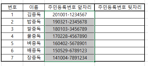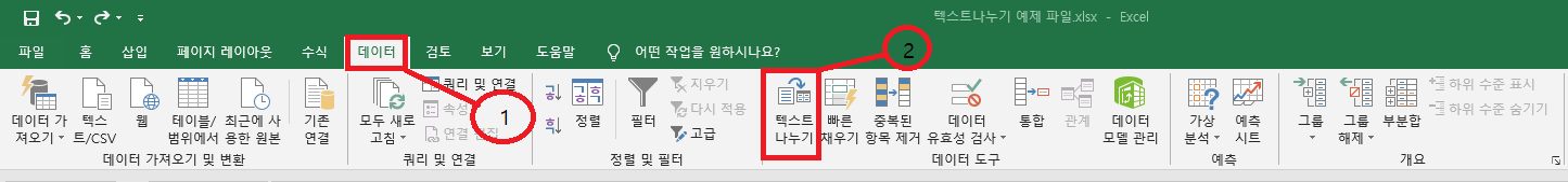 데이터 도구란에 있는 텍스트 나누기 클릭