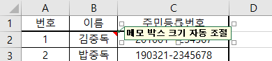 메모 서식(O) 클릭, 맞춤탭에 자동 크기(U) 클릭